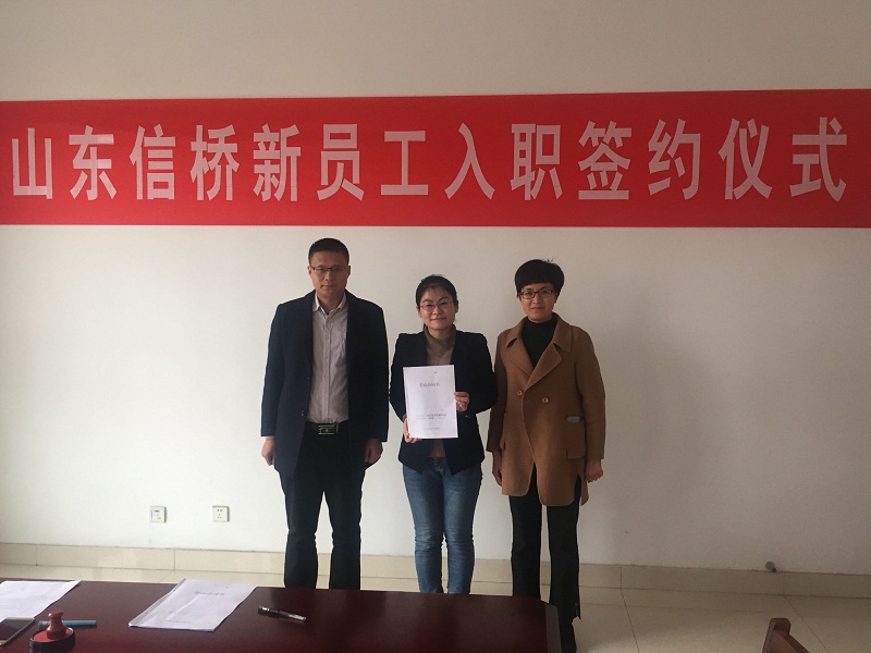 2018年11月30日下午3點,新員工入職簽約儀式在泰安信橋二樓會議室舉行,公司副總石振偉與新員工李佳欣參加,同時公司財務總監(jiān)張燕與人事人員出席。