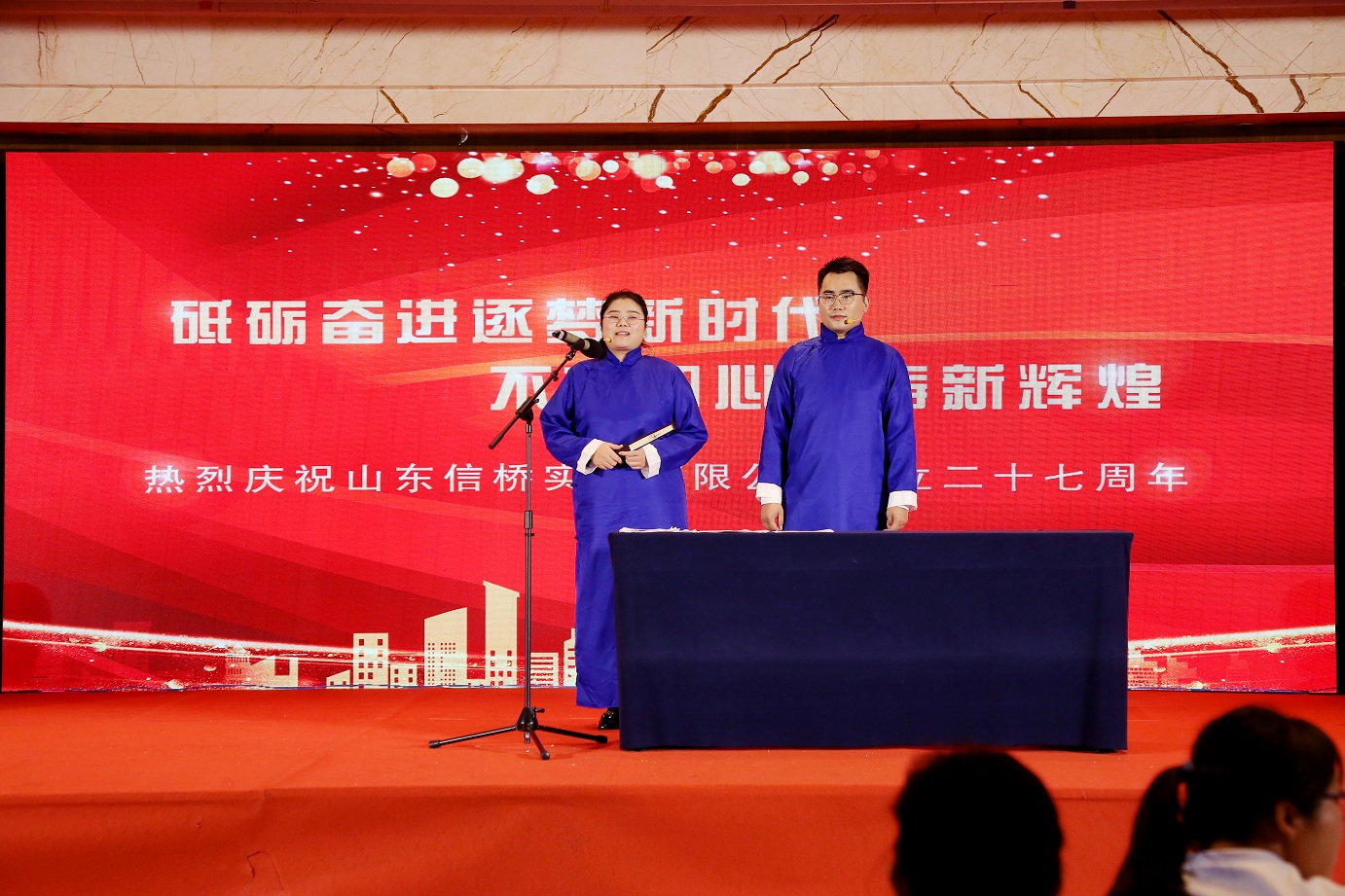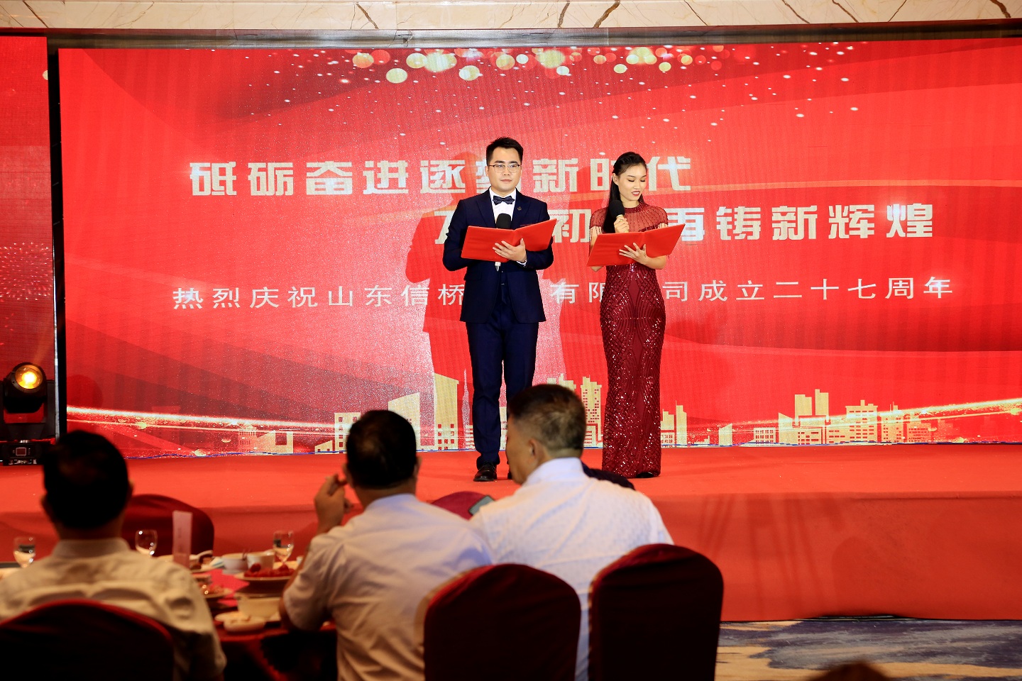 歲月如歌,風(fēng)霜如畫,二十七年彈指一揮間,山東信橋?qū)崢I(yè)有限公司(以下簡(jiǎn)稱山東信橋)迎來(lái)了二十七周年的生日。二十七年來(lái),信橋人在激烈的市場(chǎng)競(jìng)爭(zhēng)中奮力拼搏、砥礪前行,接受了市場(chǎng)風(fēng)風(fēng)雨雨的洗禮,取得了累累碩果。為了慶祝這一特殊的日子,2021年8月8日,以“拼搏進(jìn)取,開創(chuàng)新時(shí)代”為主題的山東信橋二十七周年慶典活動(dòng)在寶盛大酒店舉行。