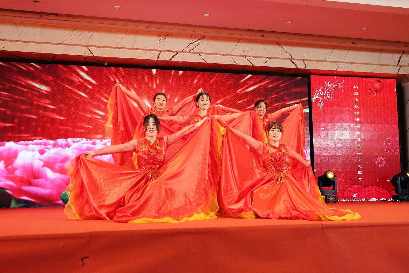 此次慶典晚宴參加人員除了信橋全體員工之外,還有部分老領(lǐng)導(dǎo)和老朋友,大家共同分享了信橋二十七周年的喜悅與精彩。八號(hào)上午,慶典開始之前,演員們辛勤排練,燈光師、音響師共同配合,所有人為了晚會(huì)都在努力。下午4點(diǎn)58分,晚會(huì)正式開始,全體員工與領(lǐng)導(dǎo)集體合影,信橋隊(duì)伍不斷在擴(kuò)大。今年的晚會(huì)添加新的互動(dòng)方式,采用了直播和紅包雨的新形式,是信橋周年慶典的一次新的嘗試。