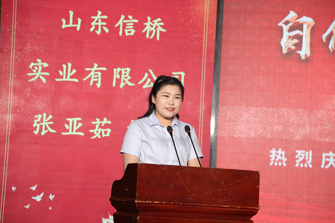 員工代表張亞茹講話(huà),她是青年一代的代表,代表了從校園進(jìn)信橋的一代,感慨了信橋二十幾年的發(fā)展,感謝信橋給予她的財(cái)富和能力。
