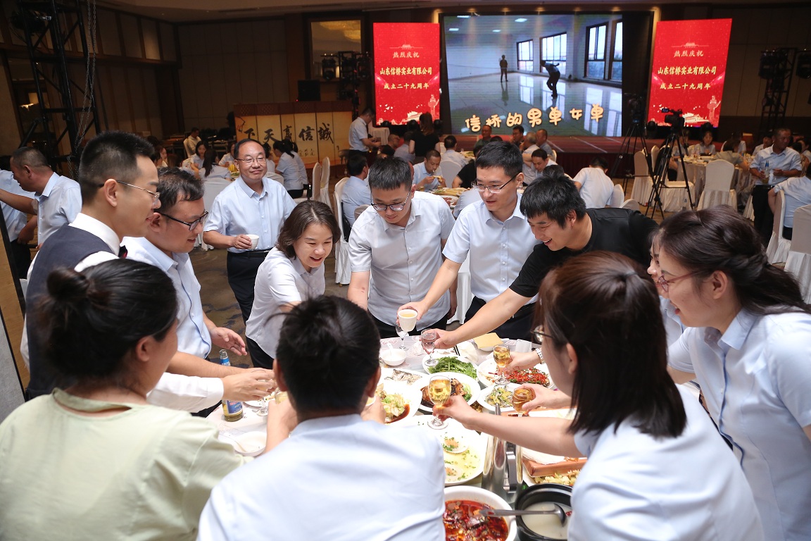 歲月如歌,風(fēng)霜如畫(huà),二十九年彈指一揮間,山東信橋?qū)崢I(yè)有限公司(以下簡(jiǎn)稱(chēng)山東信橋)迎來(lái)了二十九周歲的生日。二十九年來(lái),信橋人在激烈的市場(chǎng)競(jìng)爭(zhēng)中奮力拼搏、砥礪前行,接受了市場(chǎng)風(fēng)風(fēng)雨雨的洗禮,取得了累累碩果。為了慶祝這一特殊的日子,2023年8月8日,以“激流勇進(jìn),安定團(tuán)結(jié)謀發(fā)展 披荊斬棘,開(kāi)拓創(chuàng)新向未來(lái)”為主題的山東信橋二十九周年慶典活動(dòng)在寶盛大酒店舉行。